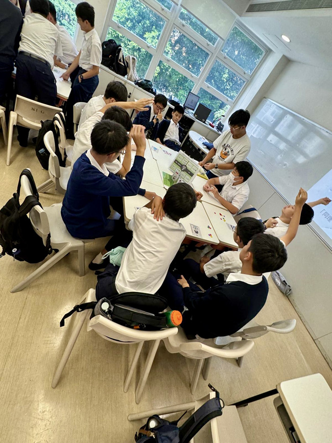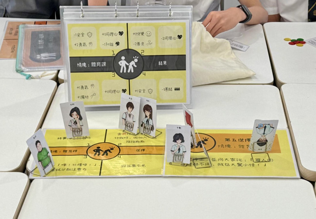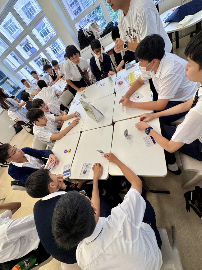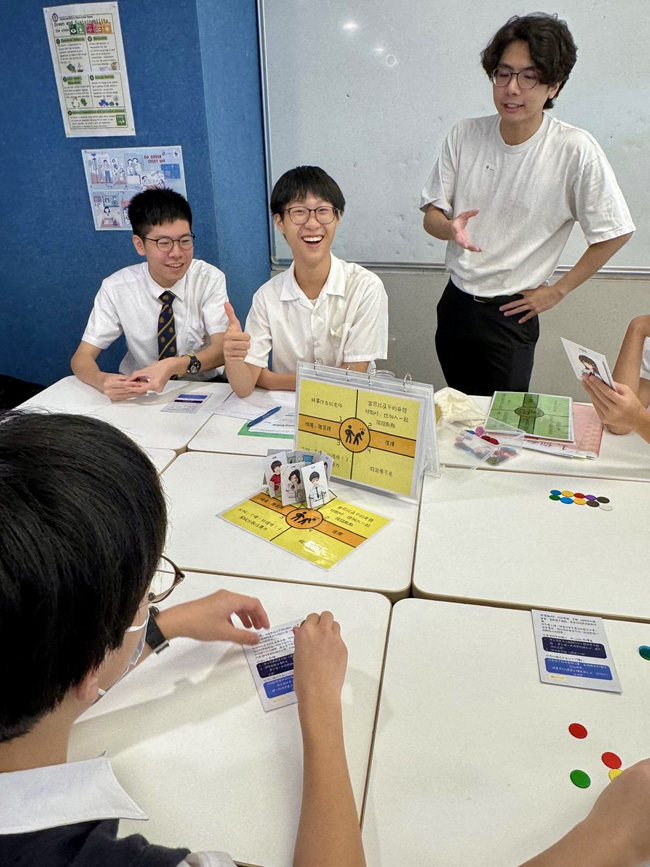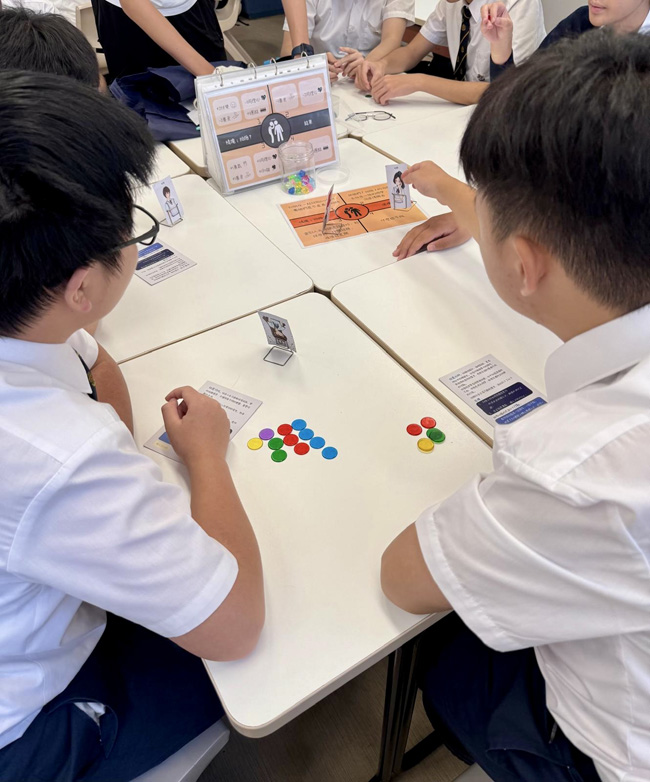 Social workers and student leaders were deployed to each Form 3 classroom to host a board game activity. The game began with students answering scenario-based questions about various socially awkward situations in daily life, each with multiple-choice answers. The boys actively participated in making thoughtful decisions to earn as many game chips as possible. Throughout the activity, they grappled with the dilemma of prioritizing individual gain versus teamwork. The program guided them in weighing different choices regarding safety, empathy, cooperation, and bravery.
